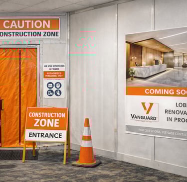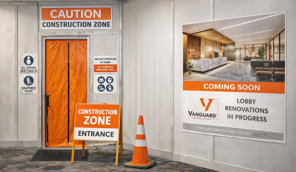 Construct hard temporary partitions to fully separate the construction zone from occupied areas. These partitions provide superior dust, noise, and visual control compared to plastic barriers and are the preferred solution for long-duration or high-impact work.